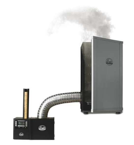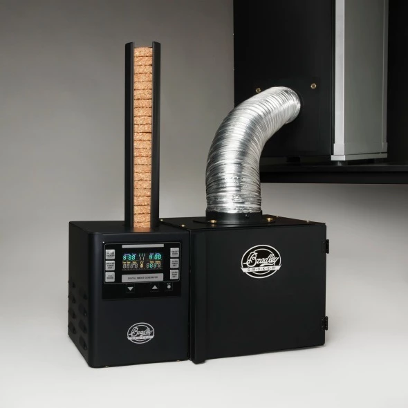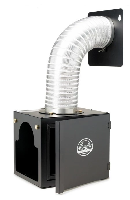 El diseño de los ahumadores Bradley permite que podamos separar el generador de humo de la cabina de ahumado de alimentos. De esta manera el calor desde el calentador de los bisquettes, la fuente del humo, se disipa fuera del armario aislado y lo tanto no se experiencia ningún aumento significativo en la temperatura del humo.