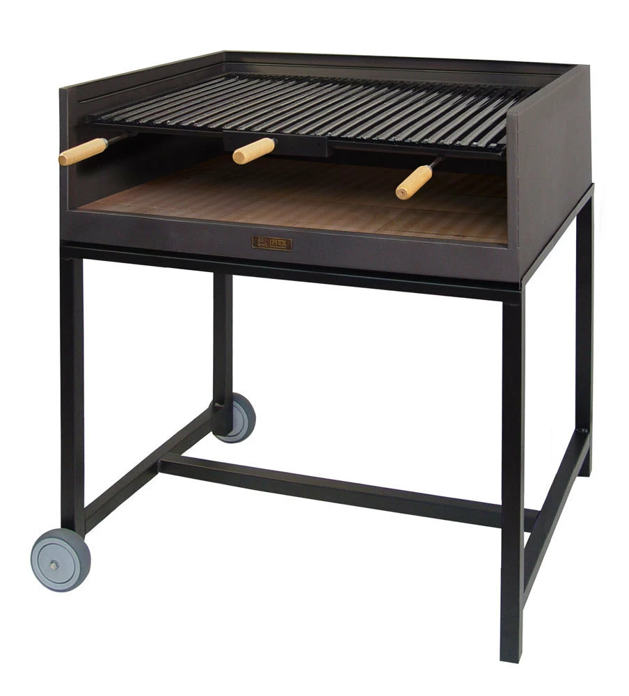 Las barbacoas de Imex El Zorro han sido completamente rediseñados. En este modelo de cajón se han reinventado gracias a la base de ladrillo refractario de alta resistencia, lo que nos permite poder usar leña sin problema, totalmente al estilo argentino! Además su parrilla esmaltada de gran profundidad nos permitirá cocinar grandes paellas. Gracias a sus dos elegantes ruedas 4×4 para todo tipo de superficies, podremos desplazar la barbacoa fácilmente de un lado a otro.
