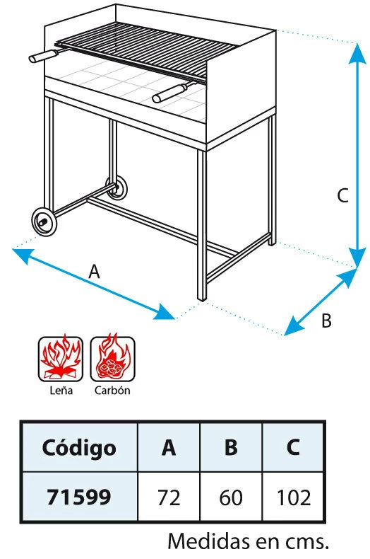 – Combustible recomendado: Leña, Carbón y Briquetas.