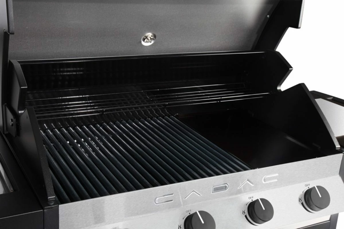 Esta Ultra elegante barbacoa de gas Cadac Meridian de 3 quemadores con un quemador lateral integrado, le inyectará un aire de modernidad y diseño a su terraza o jardín, y le hará disfrutar de momentos inolvidables. Además del diseño las barbacoas Cadac se caracterizan por su calidad y tecnología, esta barbacoa se diferencia de sus competidores porque incorpora el Sistema Modular Cadac Meridian, Parrillas Reversibles Thermogrids y el Sistema de Limpieza Fácil. Todo esto hace que sea un impresionante objeto de deseo!.
