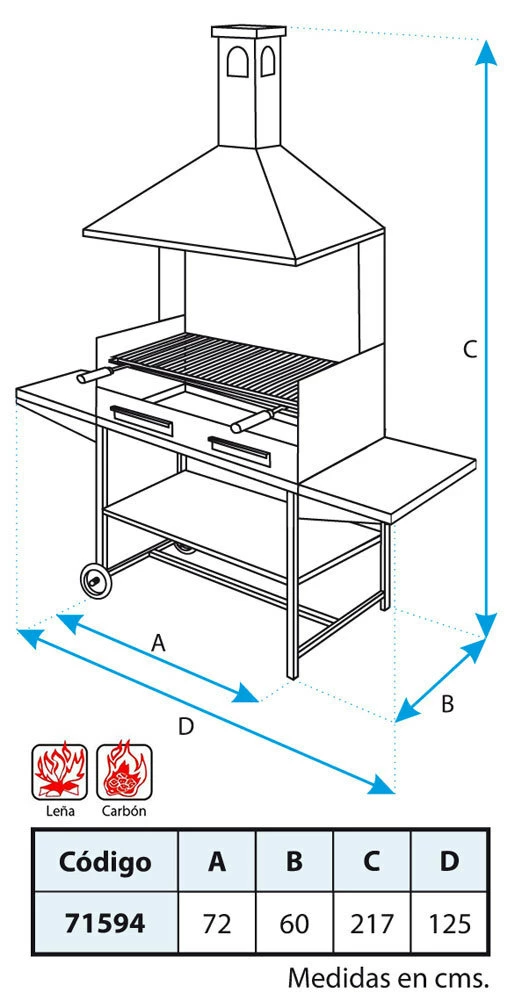 – Combustible recomendado: Leña, Carbón y Briquetas.
