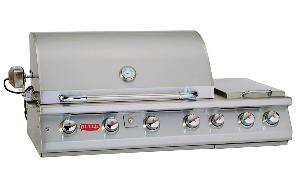 La barbacoa de Gas Bull 7 Burner Premium para Encastrar es el tope en barbacoas de encastrar. Esta barbacoa encastrable de lujo tiene una zona de cocción primaria de 76 cm. de ancho junto con un fogón de dos quemadores. Incluye rustidor con motor eléctrico de Acero Inoxidable junto con un quemador infrarrojos trasero.