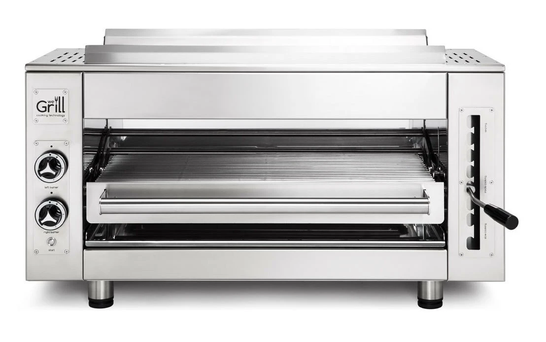 Tiempos reducidos de cocción, sin humos ni malos olores. WeGrill Pro M es una barbacoa profesional de infrarrojos a gas con calor superior, dotada de rejilla de cocción de altura regulable para adaptarse perfectamente a alimentos de distintos tamaños y con diferentes tiempos de cocción.