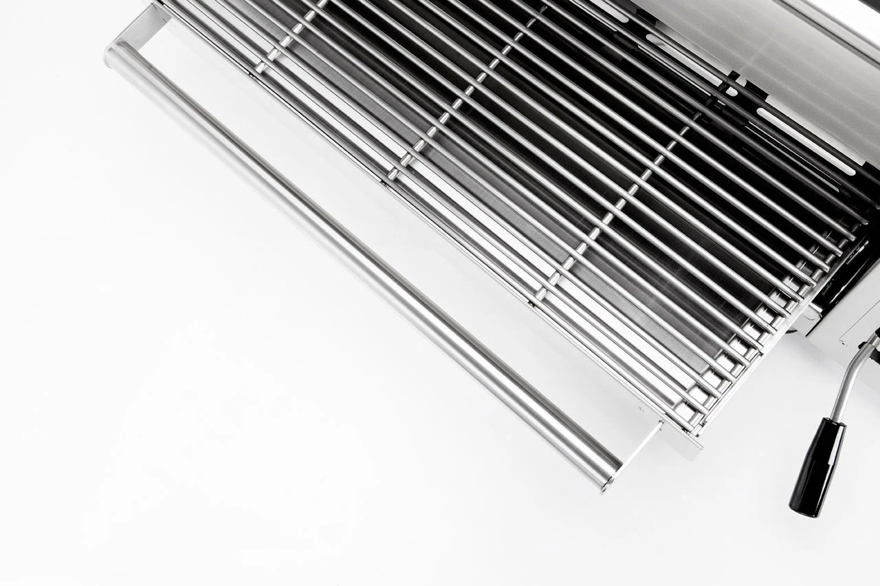 La barbacoa está fabricada completamente en Acero Inoxidable 304. Las rejillas y las encimeras se desmontan cómodamente y se lavan con facilidad en el lavavajilas.