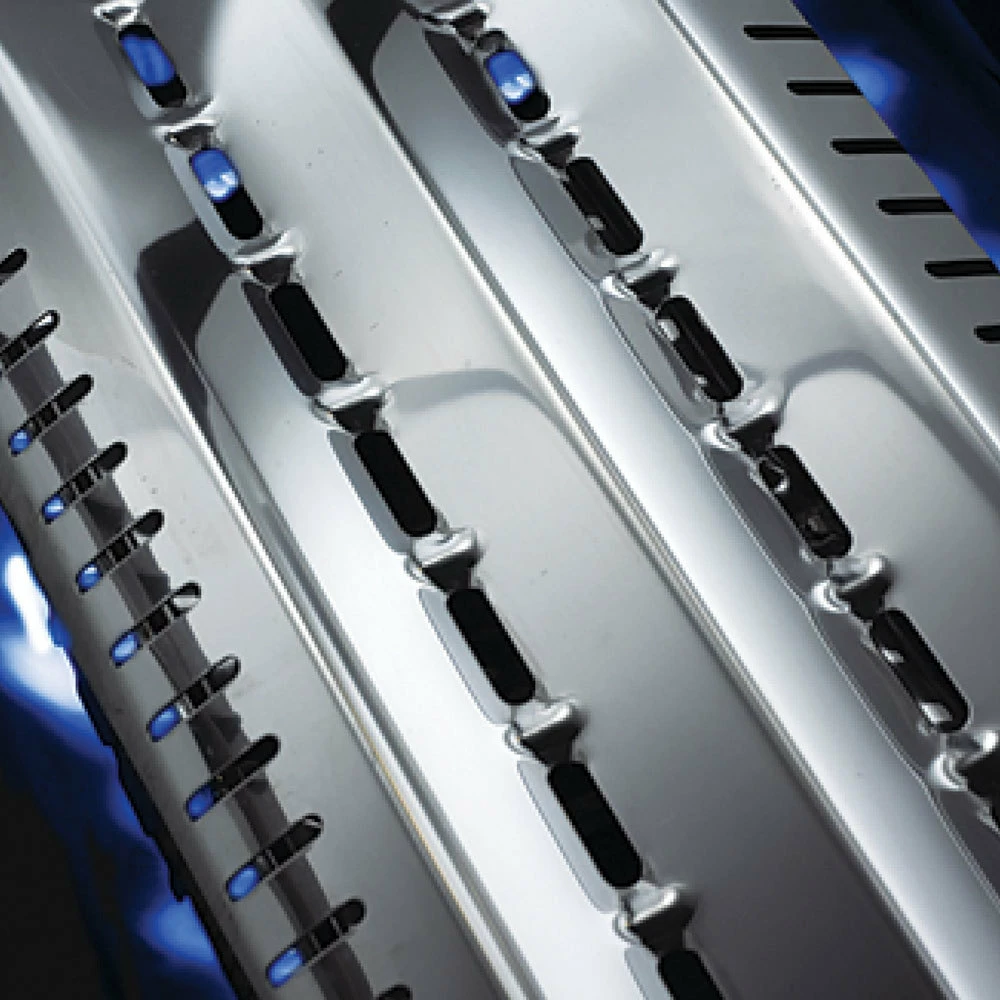 – Supresores de llama de Acero Inoxidable “Flav-R-Wave”, cuando la grasa cae encima de los protectores de llama, esta automaticamente es vaporizada haciendo que nuestra comida se impregne de este vapor dandole un sabor más intenso y autentico. Además tampoco tendremos llamaradas al cocinar.