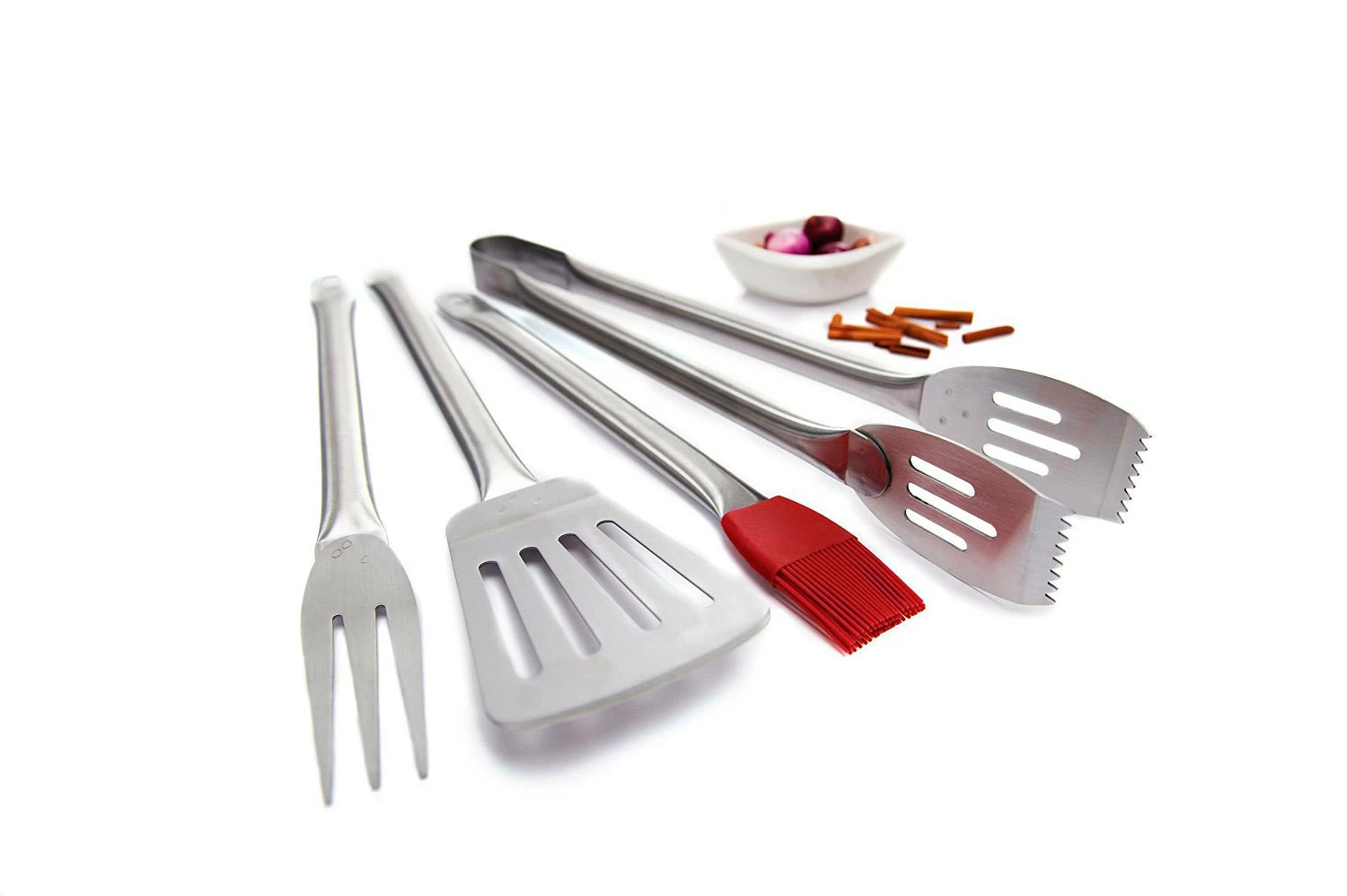 – El set se compone de una espátula, pinzas, tenedor y brocha de silicona.