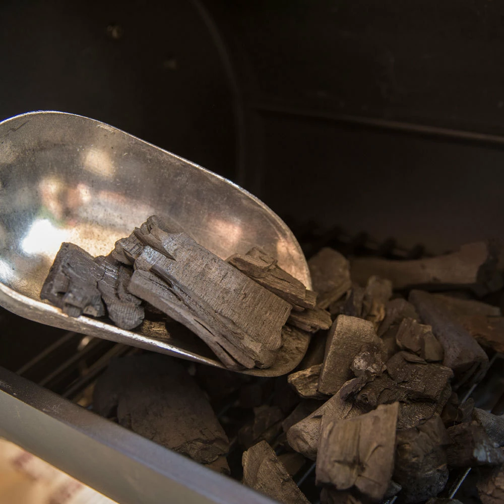 – 2 Bandejas de carbón en la cámara de cocción principal y parrillas para el carbón en la cámara pequeña, le permiten añadir su mezcla favorita de virutas de madera, carbón o leña fácilmente.