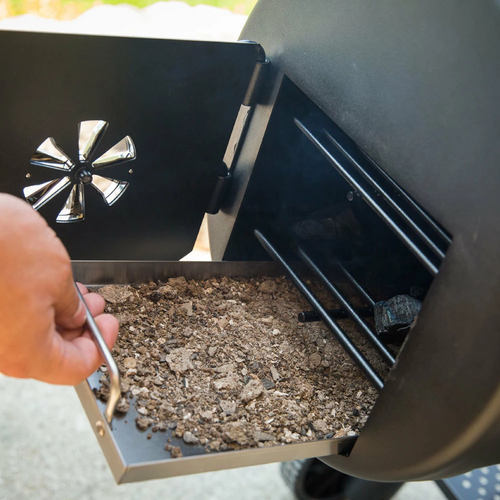 – Ceniceros de Acero Inoxidable extraible: Están situados en la cámara de cocción principal y secundaria, simplemente abra la puerta lateral y extráigala deslizándola para una limpieza más fácil después de cada uso.