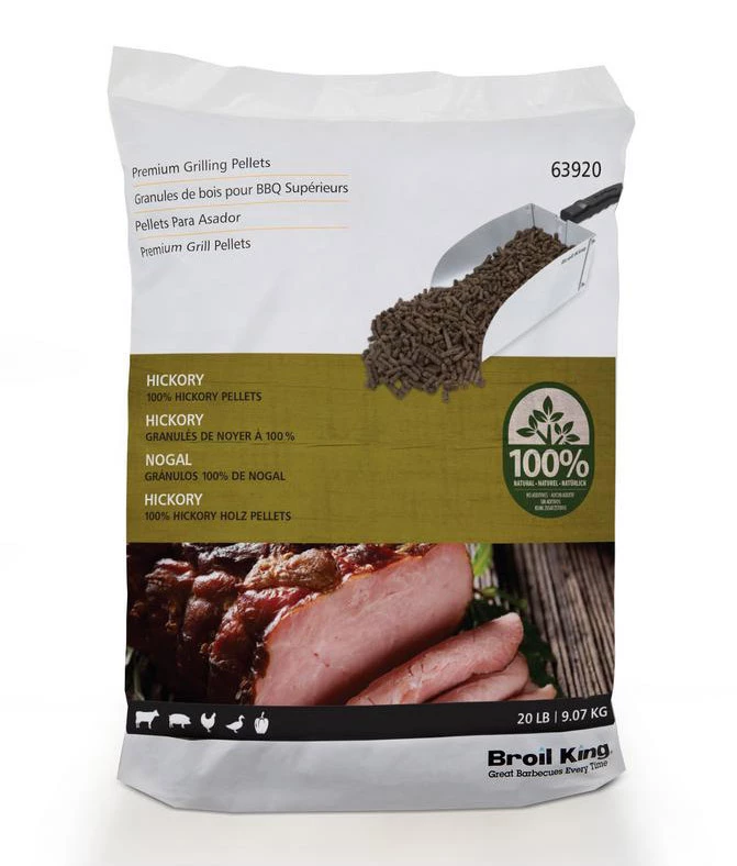 Los pellets premium de Broil King son 100% naturales y contienen solo madera de primera calidad sin rellenos, aditivos de aceite o agentes aglutinantes para brindar un rendimiento de cocción superior y un excelente sabor. Estos pellets están diseñados específicamente para sacar lo mejor de las barbacoas de pellets Broil King para un excelente rendimiento de cocción, con una combustión constante y con un gran sabor a ahumado. Se sirven en una bolsa con cierre de 9 kg.