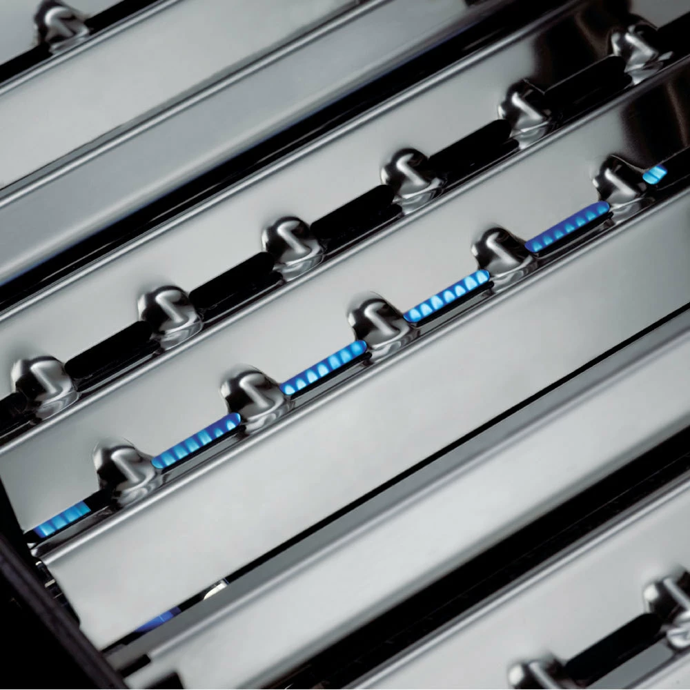 – Dual-tube™ Estos quemadores fabricados en Acero Inoxidable están diseñados para garantizarnos una llama pareja en toda la parrilla y tienen una garantía de 10 años.