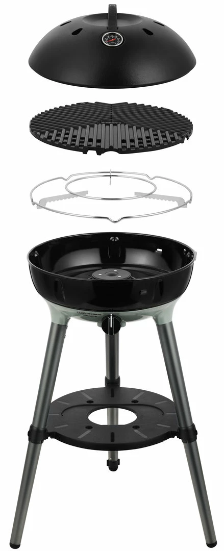 El nuevo modelo Carri Chef 40 es la barbacoa para exterior ideal. El potente quemador de acero inoxidable con encendido piezoeléctrico garantiza la temperatura adecuada. Si se cierra la tapa se convierte en horno, ideal para gratinar o asar. Si se coloca la tapadera en el lateral de la bandeja para recoger la grasa, también sirve como protector contra el viento.