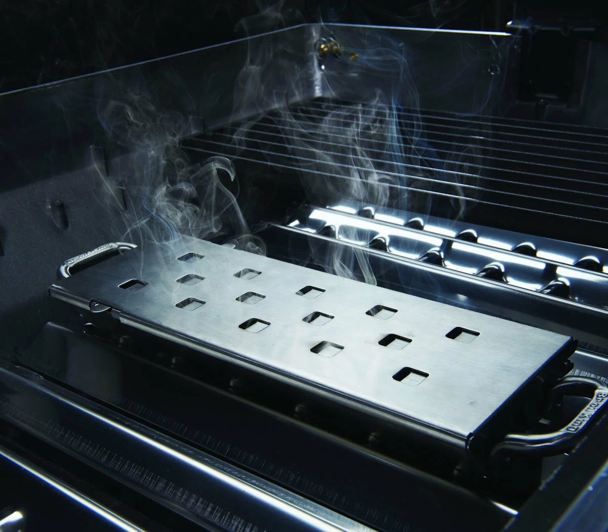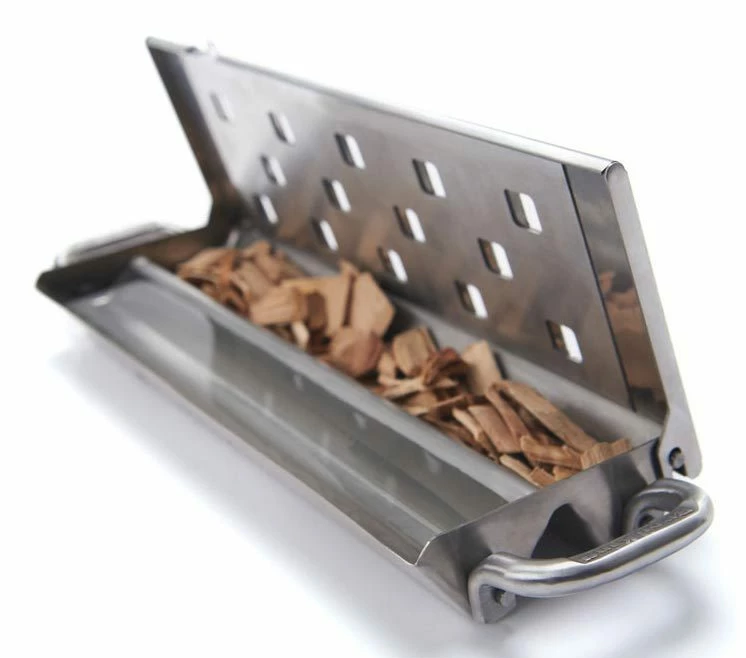 Con este ahumador y con las astillas de madera para ahumar, podremos darle un sabor especial a nuestros alimentos. Fabricado totalmente en Acero Inoxidable de 1.2 mm. de espesor y asas grandes de Acero Inoxidable de 10 mm. con el logo de Broil King grabado. Accesorio fundamental para nuestra barbacoa.