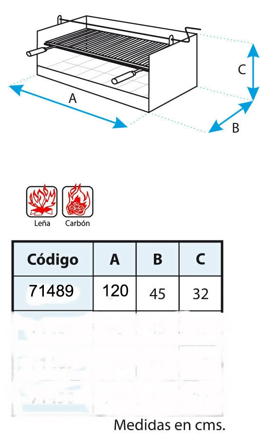 – Medida de la Parrilla: 115 x 41 cm.