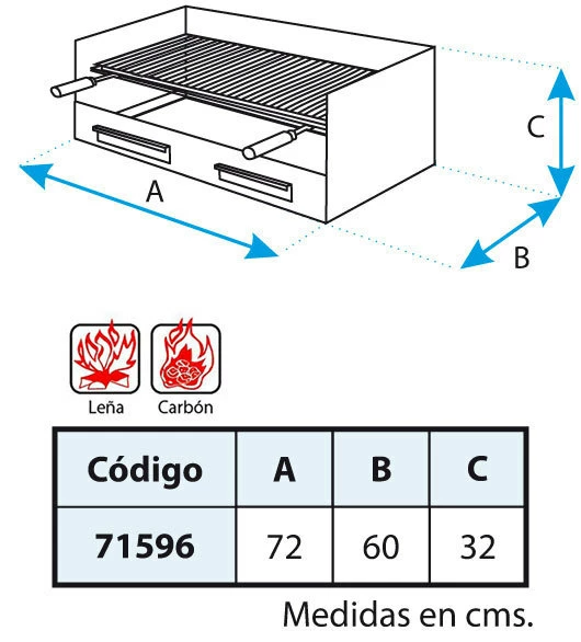 – Combustible recomendado: Leña, Carbón y Briquetas.