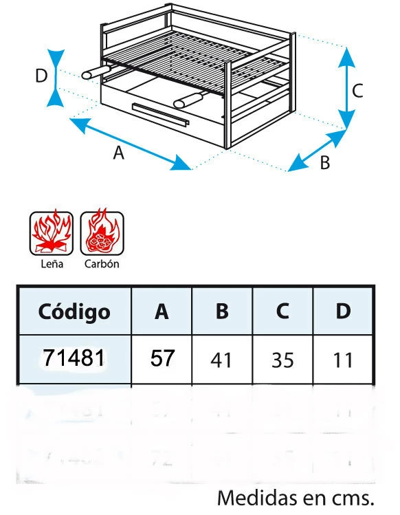 – Medida de la parrilla: 54 x 41 cm.