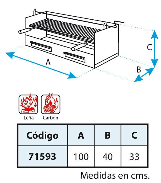 – Combustible recomendado: Leña, Carbón y Briquetas.