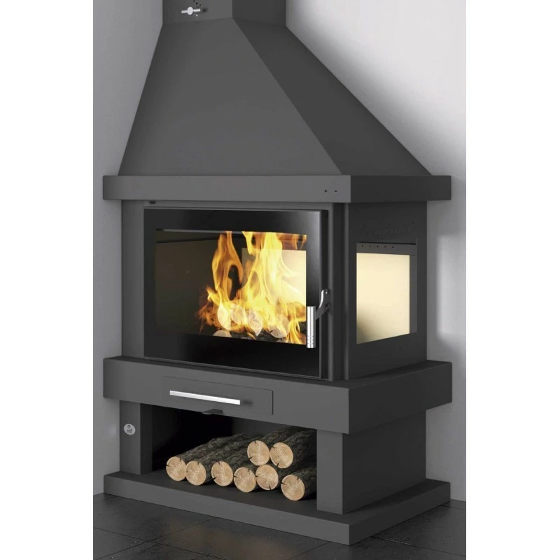 Diseño clásico con leñero , en el que se ha conseguido un gran aprovechamiento de su poder calorífico.