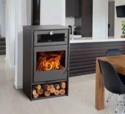 Diseño clásico con leñero, en el que se ha conseguido un gran aprovechamiento de su poder calorífico.