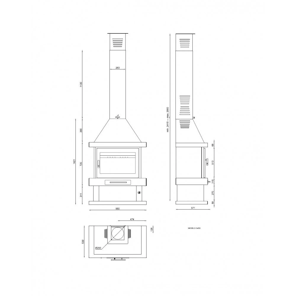 Chimenea de Leña Frontal Modelo C-200.