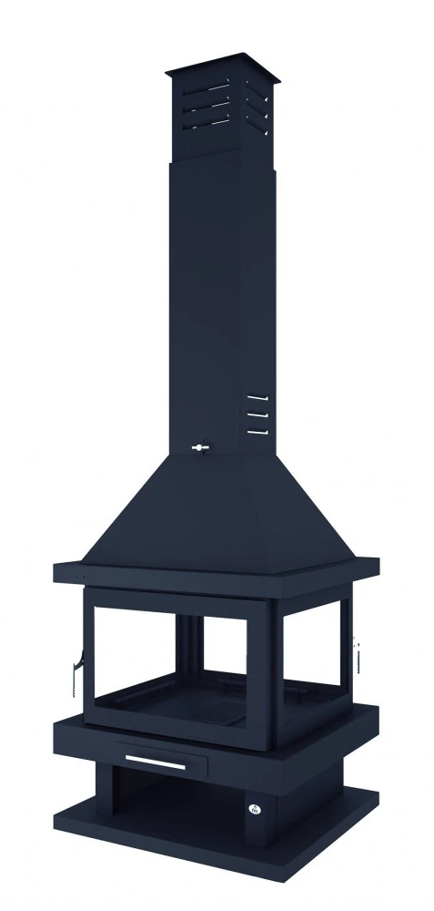 Estufa con un diseño elegante y sus 4 lados acristalados para posicionar en el centro de la sala. Construcción de altísima calidad y gran potencia calorífica.