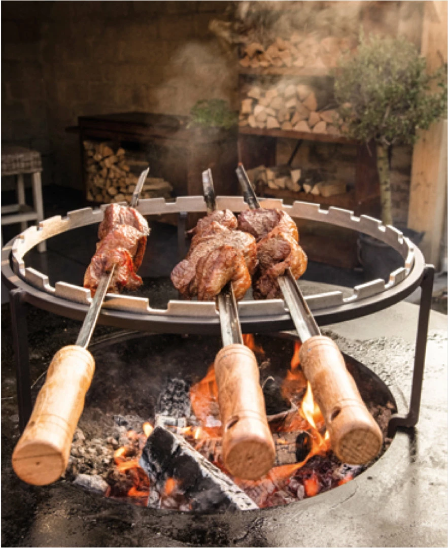Complementa su Barbacoa de Leña Ofyr con este juego de accesorios para Ofyr 85. El set estándar incluye una Parrilla Redonda Ø 39 cm, un Anillo de Espetos Horizontales y Espetos 85 cm.