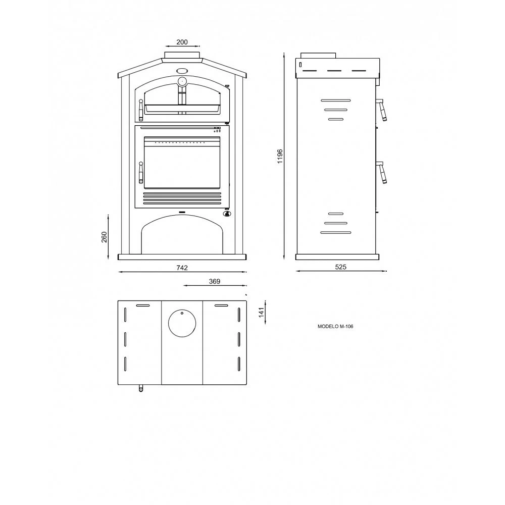 Diseño clásico con leñero, en el que se ha conseguido un gran aprovechamiento de su poder calorífico. Gracias a su hogar, recubierto de ladrillo refractario y su doble cuerpo que realiza la función de un convector natural de aire.
