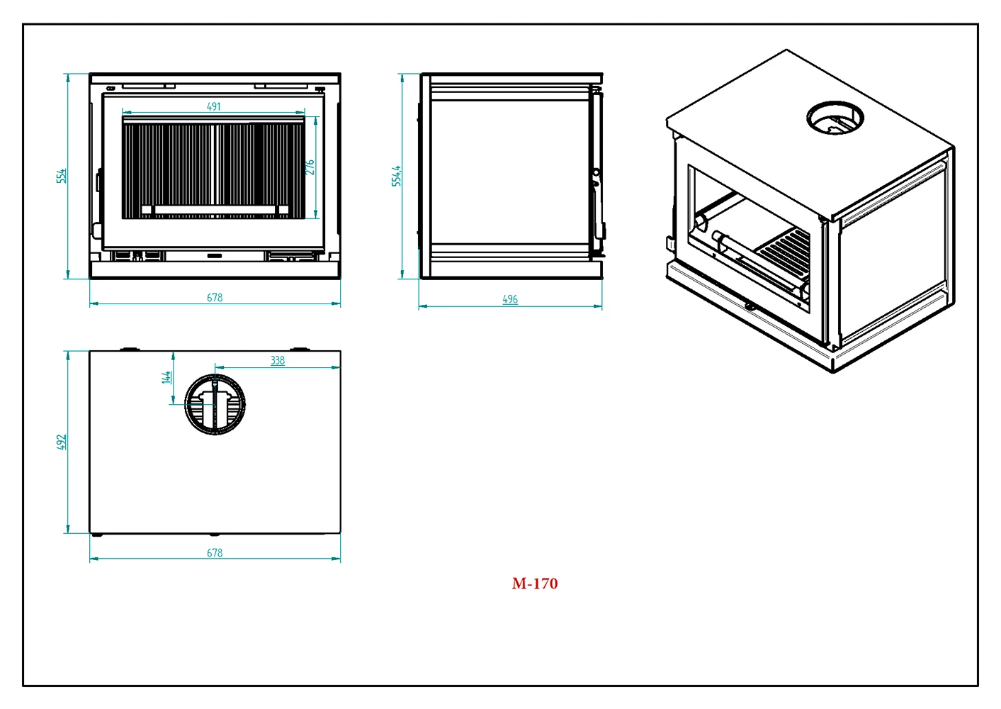 – Boca de entrada leña: 550 x 300 x 380 mm.