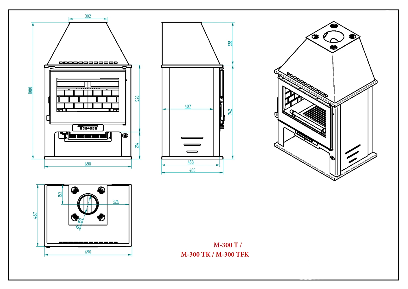 – Boca de entrada leña: 545 x 285 x 370 mm.
