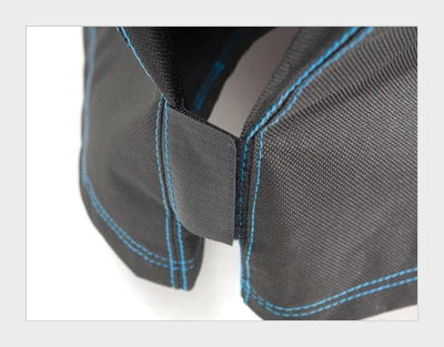 – Fabricado en poliester de alta densidad con una capa resistente al agua de pvc, con ventilacion con correa para tener un ajuste maximo, bordado en azul que ademas de darle estilo, refuerza la capa mangos de goma para una mayor comodidad a la hora de retirarla.