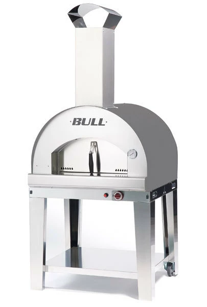 Este magnífico horno de leña a gas grande Bull con Carro, nos permite colocarlo en cualquier lado gracias su diseño. El horno tiene una abertura ancha para poder cocinar simultáneamente dos platos distintos.