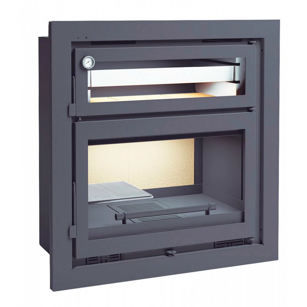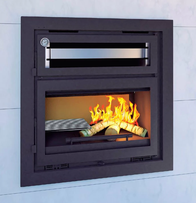 Excelente horno insertable de leña, del que se ha conseguido un gran aprovechamiento de su poder calorífico, haciendo muy confortable cualquier estancia en su hogar.