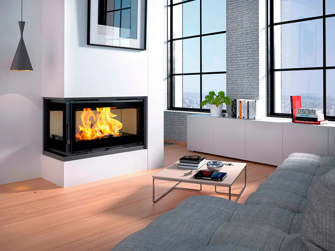 Magnífico insertable de leña, ideal para cualquier tipo de vivienda. Con una baja emisión de CO2 y un rendimiento superior al 70%, conseguimos un producto de alta calidad. También disponible con el cristal lateral orientado hacia la derecha.