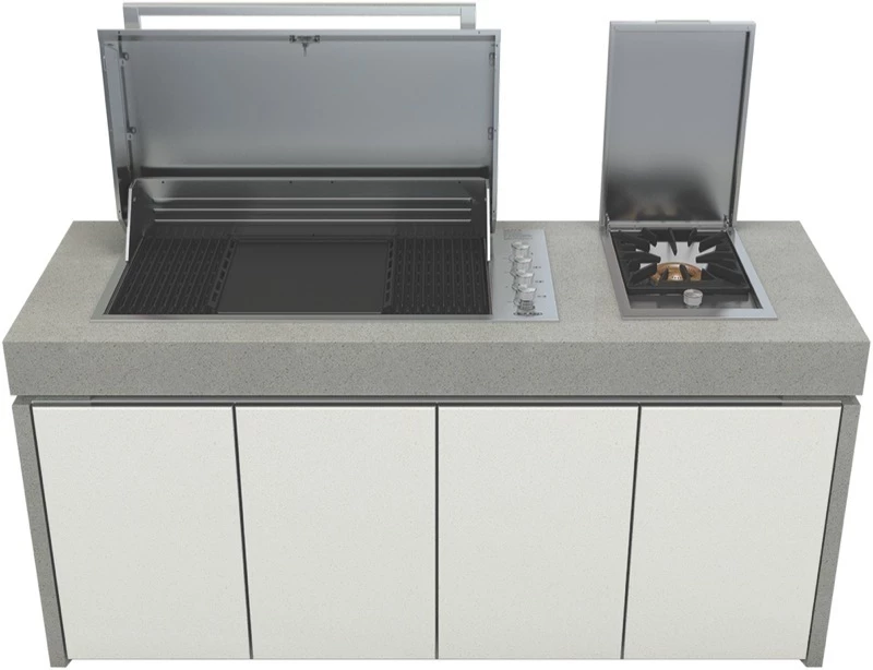 Diseñadas para perdurar al aire libre. Nuestras cocinas al aire libre con puertas duraderas de madera contrachapada de grado marino, cuidadosamente construidas, garantizan que su cocina sea resistente al agua.