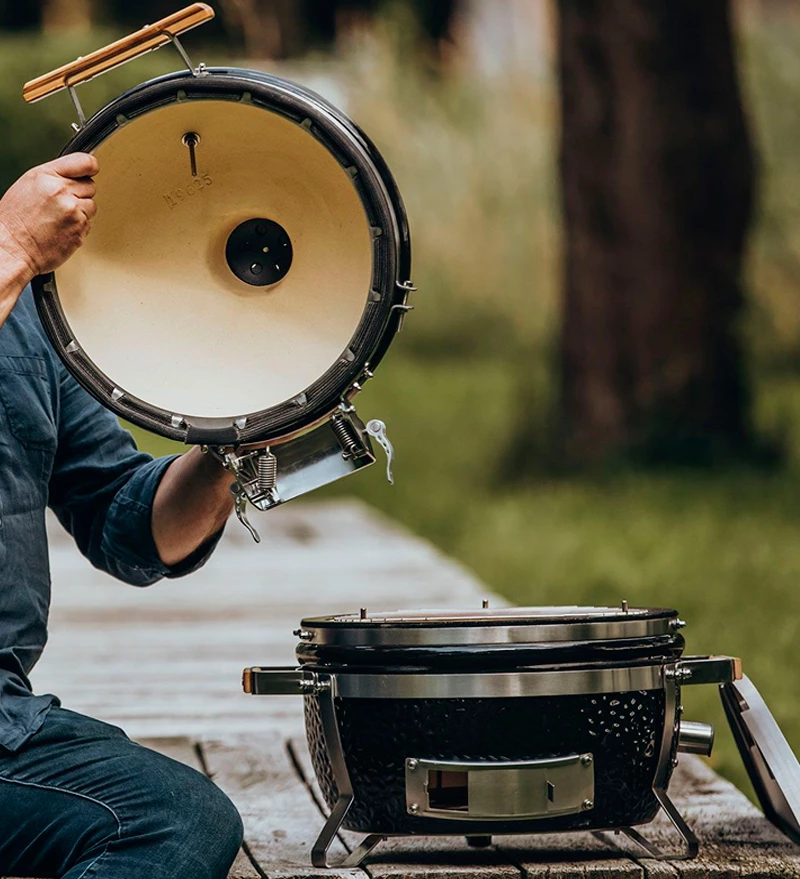 Además el kamado Icon tiene la posibilidad de quitar la tapa. Esta característica la convierte en una barbacoa que se coloca en el centro de la mesa para que todos tengan la oportunidad de compartir la barbacoa en amistad.