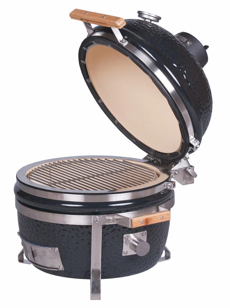 Al igual que el modelo Junior, dispone de parrilla de cocción de 33 cm y todas las funciones de cocción directa, indirecta y ahumado para que pueda utilizarse para asar, asar, ahumar y hornear.