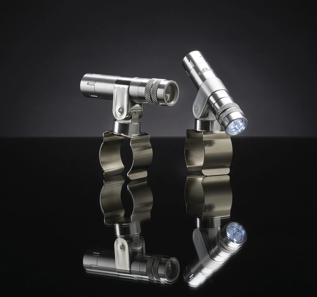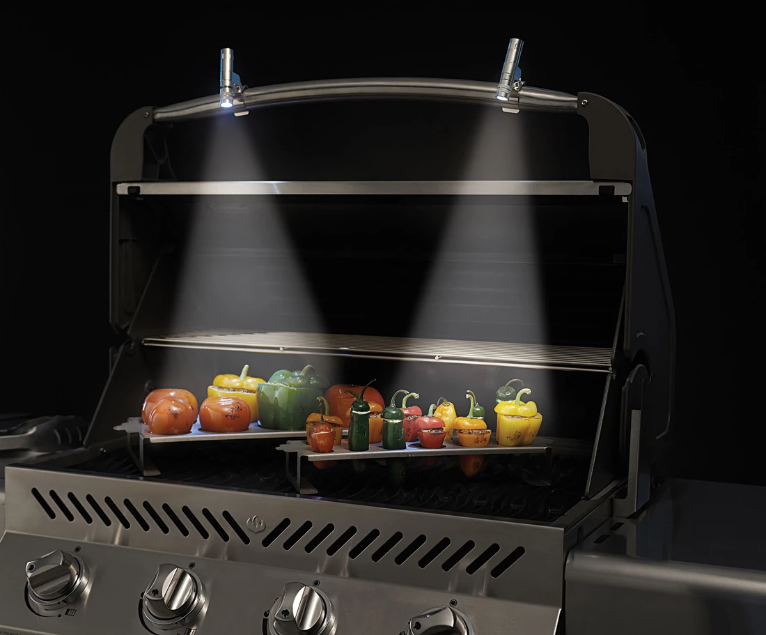Las ingeniosas luces LED de manija se adaptan a la mayoría de los modelos de barbacoas Napoleon y son adecuadas para todas las superficies metálicas.