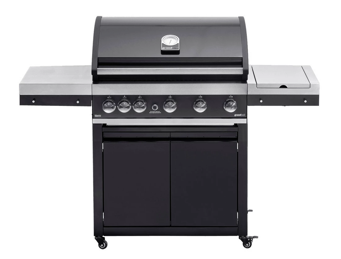 La barbacoa Grandhall Maxim G 5 es perfecta para los amantes de la buena mesa y para los parrilleros más exigentes. Con su excelente construcción, diseño elegante, y buenísima relación calidad/precio, esta barbacoa nos quedara fantástica en cualquier zona de nuestra terraza o jardín. Con un solo toque de un botón, los quemadores se encienden y alcanzarán la temperatura de cocción en cuestión de minutos. Gracias al termómetro que integra en el tapa, usted podrá conseguir las temperaturas perfectas cuando utilice su barbacoa para función de horno para realizar asados, rustideras, pizzas, pescados al horno, etc. También integra un práctico quemador lateral.