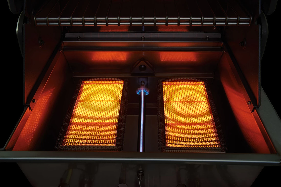Ase como un profesional. El calor del quemador infrarrojo trasero es perfecto para marcar a fuego alto y asar a fuego lento.
