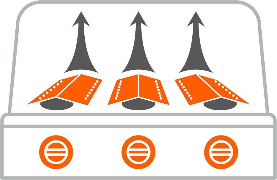 – 3 quemadores de Acero Inoxidable con una potencia total de 7,5 kW.