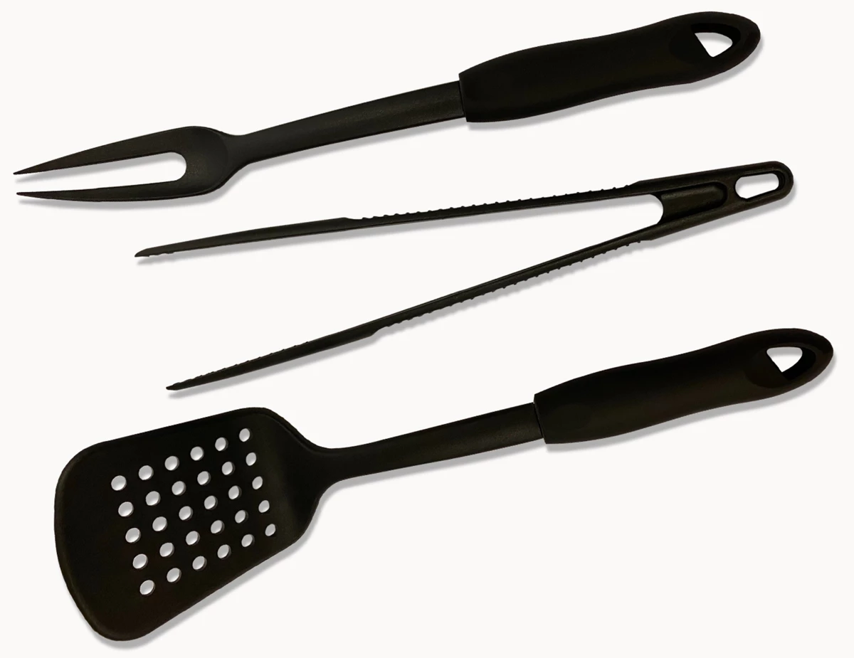 Con este juego de barbacoa fabricado en plástico resistente al calor, se convertirá en un auténtico maestro del Braai. Con la espátula, las pinzas y el tenedor, podrá preparar fácilmente cualquier plato en la barbacoa. Protege el revestimiento CADAC GreenGrill de arañazos y daños.