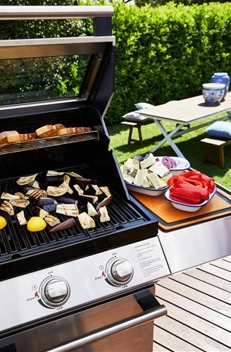 – Una tapa extraíble que permite que la barbacoa se asiente cómodamente contra la pared.