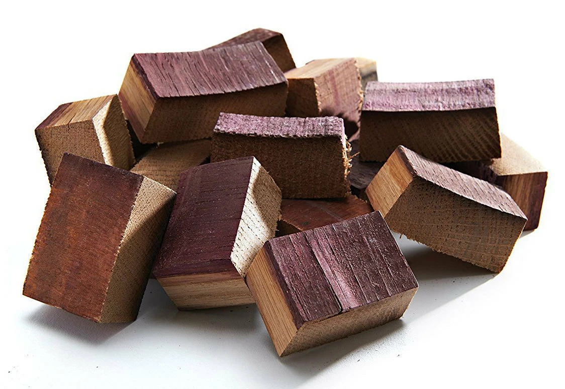 – Los trozos de barril de vino, son de madera de roble y se utiliza para ahumar, se cortan de barriles desechados, después de ser usados para añejar lentamente algunos de los mejores vinos de Canadá y EE.UU.