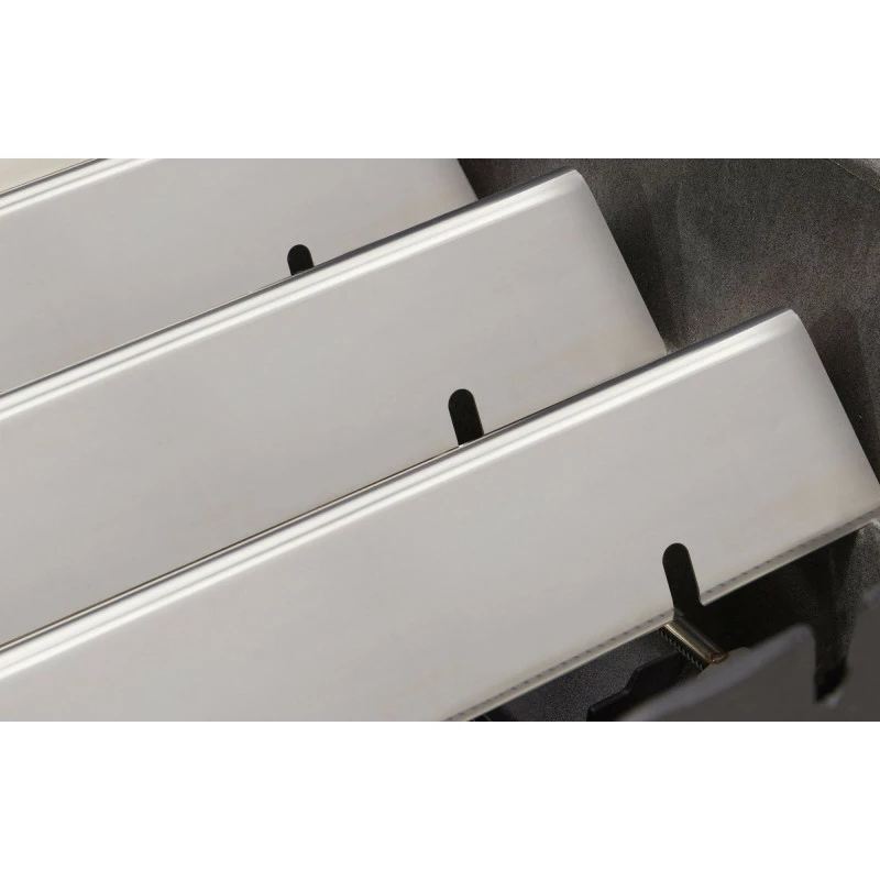 Las clásicas barras Flavorizer de Weber están orientadas con el ángulo perfecto para atrapar los jugos, que humean y crepitan para aportar ese irresistible sabor a barbacoa tan familiar y deseado. Las gotas que no se vaporizan por efecto de las barras Flavorizer siguen la pendiente de su exclusivo ángulo y se canalizan fuera de los quemadores hasta el sistema de recogida de grasa.