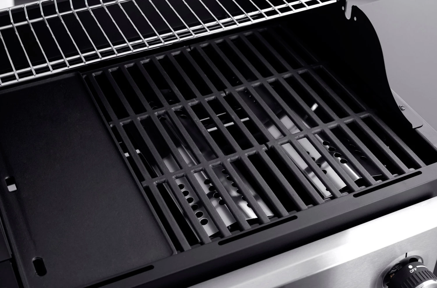 La calidad de la barbacoa es simplemente excelente, fabricada en Acero Inoxidable y en Acero Vitrificado y viene equipada con un práctico quemador lateral.